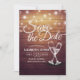 Guardar las plantillas de tarjetas de invitación a la boda de la fecha - Elegante guión de letras, Vintage Champagne Glasses y String Lights on Rustic Wood Background. ¡Un Diseño Perfecto Para Tu Gran Día! Todos Los Estilo De Texto, Los Colores Y Los Tamaños Se Pueden Modificar Para Ajustarse A Sus Necesidades.