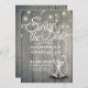 Guardar las plantillas de tarjetas de invitación a la boda de la fecha - Elegante guión de letras, Vintage Champagne Glasses y String Lights on Rustic Wood Background. ¡Un Diseño Perfecto Para Tu Gran Día! Todos Los Estilo De Texto, Los Colores Y Los Tamaños Se Pueden Modificar Para Ajustarse A Sus Necesidades.