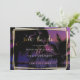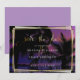 Boda - Guardar la fecha | Noche Tropical Exótica de Boda junto a BarefootBride™ - Playa de Isla Tropical al atardecer - un perfecto conjunto de Boda en la Playa por la Noche - palmeras exóticas con las olas del océano rompiendo en la orilla de una playa prístina justo antes del anochecer cuando el cielo está iluminado en magenta, púrpura y rosas brillantes. Esta colección presenta una forma geométrica de oro estilo terrario descentrado con una ventana central ahumada y transparente y bordes de transparencias variables en las facetas para permitir que las Palmeras Exóticas de la Isla y el fondo de la Puesta de Sol se muestren en una variedad de formas e intensidades. Una combinación de caligrafía de guión dorado combinada con un diseño de texto minimalista y contemporáneo hace que sea una suite de boda de estilo de tendencia. Esto