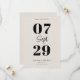 Tarjetas modernas de aviso de boda con un diseño minimalista y elegante en negro y color marfil.