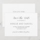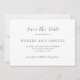 Guardar la fecha de boda elegante con un diseño simple y minimalista con los detalles de su evento en fuentes serif tradicionales y elegantes letras script.