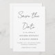 Bodas minimalistas y modernas en blanco y negro que ahorran la invitación de fecha con escritura a mano y un diseño de tipografía simple. Compra esta colección para coordinar invitaciones de boda!