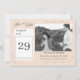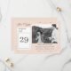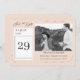 El diseño incluye las palabras "Save the Date" y un elegante tipo de letra plateado como encabezado a la izquierda del diseño. Justo debajo se muestra claramente la imagen de un calendario diario con la fecha de su boda. Su foto aparece como imagen principal a la derecha del calendario. El día y la fecha del boda, los nombres de la pareja y la ciudad de la ceremonia aparecen justo debajo de la foto en contra del respaldo color rosa champán. El reverso presenta un simple florecimiento en el centro. Muy elegante. Diseñado para coordinar con la colección "Simplemente católico" de la suite Boda. También disponible en blanco.