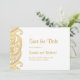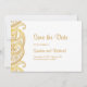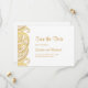 Tarjeta de aviso de boda india con diseños de paisley dorados. Perfecta para bodas tradicionales y otros eventos.