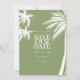 La boda tropical con palmera verde Save the Date presenta un diseño exuberante con vibrantes palmeras verdes, perfecto para anunciar su día especial con un toque de elegancia exótica y encanto tropical.