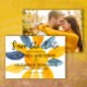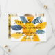 Tarjeta artística y única de boda con flores de acuarela azul y amarilla para guardar la fecha de la boda. Personalizada con tu foto en la parte trasera. Compra copias impresas o pide digital para compartir con amigos y familiares a través del correo electrónico o en tus redes sociales.
