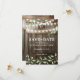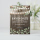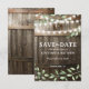 Establece el tono para tu boda campestre con nuestras tarjetas ‘Save the Date’ diseñadas de manera única. Disfruta de la belleza rústica de un fondo de barril de roble de granero oscuro, iluminado por luces de hadas titilantes. El toque de elegante follaje de vegetación en acuarela, junto con tu monograma y la redacción moderna de la boda, los convierten en un recuerdo memorable para tus invitados.