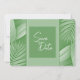 ¿Está planeando una boda al aire libre o un evento especial? Estas tarjetas de foto de código QR para guardar la fecha con tema tropical ofrecen un atractivo divertido y clásico. Características tonos de color verde recortados con hojas tropicales. Utilice para complementar temas de boda tropicales y eventos especiales. La parte frontal de la tarjeta muestra "Guarde la fecha" mientras que la parte posterior de la tarjeta acomoda una foto junto con el nombre de la pareja y la fecha de la ceremonia de boda. Este diseño también proporciona un código QR que puede utilizar para su registro de boda o sitio web (entre otros). Utilice la plantilla para personalizar.