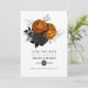 Invitación de bodas con temática de Halloween gótica floral naranja y negra vintage personalizable a tus especificaciones. Si tus nombres parecen un poco descentrados al ingresarlos, "Haz clic para personalizar aún más" (el enlace azul en la parte inferior de "Personaliza esta plantilla") para ajustarlos fácilmente en el área de diseño.