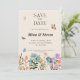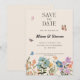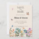 La tarjeta de "Save the Date" de bodas de flores silvestres botánicas rústicas de verano presenta un diseño encantador con flores silvestres vibrantes y elementos botánicos rústicos, perfecto para anunciar su día especial con un toque de belleza natural y elegancia campestre.