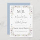 Hermosas flores silvestres sencillas y dulces crean un marco sutil alrededor de esta bonita tarjeta de aviso de boda. Fondo azul pastel. Agrega tus monogramas iniciales en la parte superior de esta linda tarjeta recordatoria.