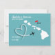 Un divertido guardar la fecha para parejas que se casan en Hawaii con un mapa de silueta blanca sobre verde azulado con dulces corazones de amor rojos y muy fácil de personalizar con sus nombres y mensaje personal