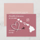 Un divertido guardar la fecha para parejas que se casan en Hawaii con un mapa de silueta blanca sobre rosa dorado con corazones de amor rosados dulces y muy fácil de personalizar con sus nombres y mensaje personal