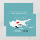 Un divertido aviso de guardar la fecha para parejas que se casan en la hermosa isla de Chipre con un mapa de silueta blanca de Chipre en azul verde con corazones de amor rojos dulces y muy fácil de personalizar con tus nombres y mensaje personales