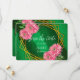 Una delicada ilustración de acuarela que presenta un marco geométrico dorado sobre un fondo verde esmeralda. El marco está adornado con vibrantes crisantemos rosados colocados a lo largo de los bordes exteriores. Todo el diseño tiene una textura suave de acuarela, que combina la elegancia con un toque floral natural.