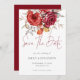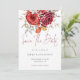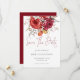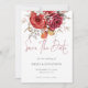 Boda de código QR de Boho Autumn Florals. Hermosos florales con un ambiente bohemio en tonos de otoño de rojo y naranja y un elegante guión para Save The Date. El resto del texto que puedes personalizar fácilmente con tus detalles. Agregue su código QR al sitio web de su boda en la parte posterior o elimine éste y el texto de la parte posterior si no es necesario.