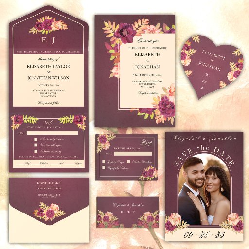 Romantic Burgundy Autumn Fall WeddingDiseñado por Justyna Pachla