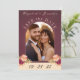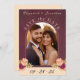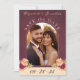Elegante y romántico salva la tarjeta de cita con tu foto favorita, con rosas acuarelas con hojas de otoño en colores ricos, cálidos y terrenales sobre un fondo burdeos. En la parte posterior de la tarjeta, un diseño floral acuarela incluye hojas de naranja amarillas, verdes, quemadas y de terracota con un monograma sobre un fondo beige. Personaliza los detalles: nombres de novias y novios, fecha e iniciales. Para ver más artículos bodas coincidentes, por favor visite mi Romántica colección de Bodas otoñales en Borgoña.