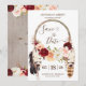 Tu celebración boho puede ser rústica y elegante al mismo tiempo. Este hermoso diseño de "Save the Date" presenta lo mejor de ambos mundos. Con hermosas flores de acuarela en rosa suave, rosa borgoña y delicioso melocotón que adornan un atrapasueños boho con plumas y flores, este diseño seguramente emocionará a tus invitados en anticipación de tu gran día. Coincide con otros diseños en nuestra tienda para crear un conjunto completo y es totalmente personalizable para cualquier ocasión. Puede ser utilizado para una boda, cumpleaños, despedida de soltera o baby shower, graduación o cualquier otro evento importante.