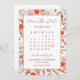 ¿Buscando un calendario boda para guardar la fecha? Mira nuestro calendario de la Moda Boho Terracotta Wildflowers Boda Save the Date! Con hermosas acuarelas, flores silvestres, suave vegetación y un colorido diseño floral de moda de boho pastel, se ahorra la tarjeta de calendario de fechas que combina encanto y elegancia. Personalizar el calendario (haciendo clic en Personalizar más adelante) con un corazón naranja para resaltar la fecha de su boda, junto con el espacio para sus nombres y detalles.