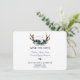 Un diseño rústico y bohemio para eventos especiales de todas las estaciones. Este diseño presenta cuernos de ciervo, ramos de flores de color rosa pálido y azul marino en acuarela, flechas con las mismas flores y en la parte posterior un fondo azul marino. Utilice la herramienta Personalizar para agregar su información. Para más, visite mi colección Cuerna Floral Rosa Azul Marino.