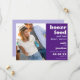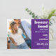 Invite a sus huéspedes a guardar la fecha de su boda en un estilo humorístico con este divertido diseño totalmente personalizable. El texto está alineado a la derecha, con tipografía en blanco en negrita en la parte superior, Comida en boza seguida de Y mala danza se mueve en lila, sus nombres, fecha boda y ubicación en una mezcla de ambos colores, en un fondo morado. Personalice fácilmente el texto y simplemente cargue su foto favorita de ambos para reemplazar la muestra. En la parte posterior hay un fondo lila de coordinación que puede cambiar a un color diferente si lo desea a través de la opción Personalizar Más adelante.