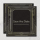 Elegante y elegante borde dorado art deco sobre fondo negro texturado tarjeta "Save the Date" que se puede personalizar.