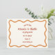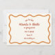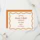 Este diseño presenta un sencillo y caprichoso borde ondulado de estilo manual. El tipo de letra usado para el texto principal es informal y lúdico, con una calidad manuscrita, dándole un toque personal e íntimo. Utilice este diseño si desea priorizar una vibración amigable y accesible a su boda sobre la formalidad.