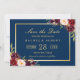 *** Véase Artículos coincidentes: https://zazzle.com/collections/119555014454658993 *** ||| Azul de la Marina Floral de Oro de Borgoña Marsala | Boda Guardar la tarjeta de fecha. (1) Para una mayor personalización, haga clic en el enlace "personalizar adicional" y utilice nuestra herramienta de diseño para modificar esta plantilla. (2) Si necesita ayuda o elementos coincidentes, póngase en contacto conmigo.