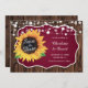 Boda rústica borgoña salva la tarjeta de cita con un girasol y luces de cuerda sobre un fondo rústico de madera. Diseño perfecto para un fiesta de bodas de otoño rústico.