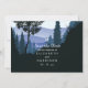 Estas tarjetas de citas son perfectas para cualquier pareja que planee una celebración rústica boda. El diseño presenta un bosque elegante con un telón de fondo montañoso en tonos azules. El hermoso diseño puede ser personalizado para adaptarse a su evento especial y será el perfecto para guardar la fecha para cualquier fiesta temático del país, incluyendo duchas de novias, compromisos, duchas de bodas, fiestas de cumpleaños y mucho, mucho más.