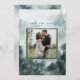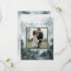 Su foto familiar está frente y centro en un marco verde forestal con una falsa capa dorada. El fondo de esta tarjeta de Navidades incluye un majestuoso bosque acuático de árboles de color verde perenne. La parte superior de la tarjeta tiene una acuarela que dice "Feliz Navidad". En el interior, el saludo dice "Que esta temporada de vacaciones te acerque a todos los que aprecias en tu corazón. ¡Les deseo una feliz Navidad y un feliz año nuevo!" El fondo es un lavado de acuarela coordinado. Puedes personalizar con tu nombre.
