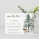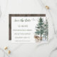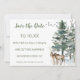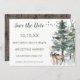 Anuncia tus próximas nupcias con nuestras tarjetas de Guardar la Fecha del Bosque de Montaña de Pino. Personaliza con la información de tu fiesta para crear un Guardar la Fecha único que tu familia y amigos seguramente amarán. Diseñado con un bosque de pinos, dos ciervos con pájaros, fuentes modernas y salpicaduras de acuarela.