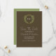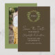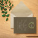 Wedding collection with earth tones of green and dark brown. A gold geometric monogram crest surrounded by botanical leaves.. Photo template via Pixabay licensed under CC0 and must be replaced with your own photo.
