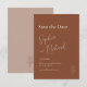 Establece el tono para tu boda con estas elegantes tarjetas de "save the date" boho, que presentan una cálida paleta de terracota y arte de línea botánica minimalista. El diseño limpio y orgánico combina el encanto terrenal con la simplicidad moderna, perfecto para parejas que aman la sofisticación discreta.