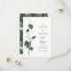 Tropical salve la tarjeta de fecha con vegetación de hojas de palma. Patrón de hojas de palma de Monstera en la parte posterior con monograma y fecha.