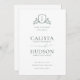 ESCUDO BRUNSWICK. La boda guarda la tarjeta de foto de fecha. Características, tipografía verde oscuro, flores botánicas y vegetación adornados con monograma escudo y foto individual en la parte posterior.