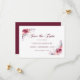 This save the date card introduces your celebration with rich burgundy watercolor tones and soft watercolor floral accents, creating an elegant and romantic first impression for your autumn wedding. The design features a refined serif font paired with a delicate calligraphy script, adding a warm, personal touch to the announcement.