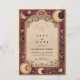 This romantic celestial wedding design captures the beauty of the night sky with rich burgundy and gold tones. Framed by ornate baroque details, glowing moons, and shining stars, it creates an atmosphere of vintage celestial elegance. Perfect for evening weddings, gothic celebrations, or couples inspired by cosmic romance.