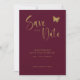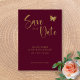 Reserva La Fecha Burgundy & Gold Script: Mariposa de Boda Brillante