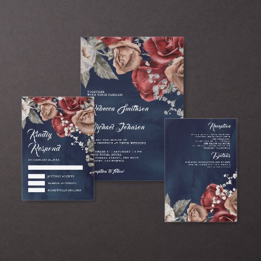Burgundy Red Roses Navy Blue Wedding SuiteDiseñado por Shabbir D