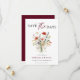 Announce your wedding date with rich, romantic elegance using this Floral Script Wedding Save the Date in a deep burgundy color palette, accented with a graceful floral bouquet tied with a delicate bow. This sophisticated design features a hand-painted watercolor bouquet paired with flowing script calligraphy and refined serif typography, creating a timeless look with a modern, luxurious feel.