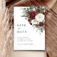 burgundy winter floral save the date card