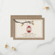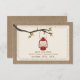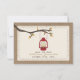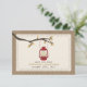 Una boda al aire libre en otoño salva la fecha con un tema de naturaleza salvaje/camping que incluye un ilustracion de una lámpara de aceite rojo colgando de una rama de árbol con hojas naranjas y marrones. El fondo de frente y de espalda está inspirado en la burlap.