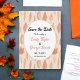 Esta elegante boda de otoño, salvo la invitación de fecha, es perfecta para un boda moderno de otoño. El diseño es sencillo, con hojas de cascada y una tipografía elegante de color negro y rosa sobre un fondo blanco.