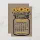 Estas tarjetas de "save-the-date" de calendario de agosto de 2023 con temática rústica tienen un marco de frasco de mason, una pancarta y girasoles de acuarela, todo sobre un fondo de arpillera falsa. Estas tarjetas sencillamente elegantes son perfectas para una boda con temática campestre. Resalta la fecha de tu boda con el icono de corazón. Utiliza las plantillas fáciles para agregar los nombres de la novia y el novio, la fecha, la ubicación y más. CONSEJO: ¿Quieres editar el resto del texto o mover el corazón a otra fecha? "Personaliza más" para hacer cambios más detallados.