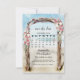 Esta hermosa tarjeta de "save the date" es perfecta para una boda en un destino. Cuenta con un calendario personalizable donde puedes poner un corazón alrededor de la fecha de tu boda con un cenador de playa de madera flotante con flores rojas y blancas al estilo acuarela. Hay espacio para tus nombres, la fecha y ubicación de la boda, y una URL del sitio web (opcional).