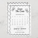 Guarde la fecha con estilo con este diseño de calendario caprichoso dibujado a mano. Con detalles manuscritos peculiares, añade un toque juguetón y personal a su anuncio de boda, lo que lo convierte en la forma perfecta de marcar el día especial en los calendarios de sus invitados.