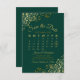 Esta tarjeta Save the Date presenta un hermoso diseño con letras de guiones dorados en un fondo verde esmeralda, y fríamente falsos Relieves metalizados de oro en las esquinas. Hay un calendario de personalizables donde puede poner un corazón rojo alrededor de su cita con el boda. Hay espacio para el nombre de la pareja, la ubicación del boda y el sitio web. Elegante y moda forma de hacer saber a sus amigos y familia para que ahorren la fecha de su día especial.