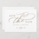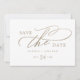 Esta caligrafía dorada romántica código QR horizontal ahorra la tarjeta de fecha es perfecta para un simple boda. El moderno diseño clásico presenta vistosos remolinos y florituras con magnífica y elegante tipografía de oro con imitación de champagne a mano. Nota: Este diseño no tiene Relieve metalizado oro real. Es un gráfico de alta calidad hecho para parecer un Relieve metalizado dorado.